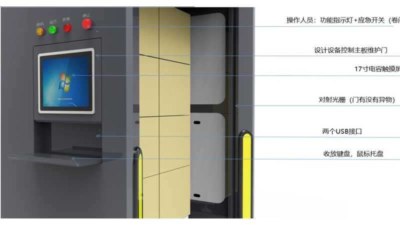 設(shè)備內(nèi)置廣角監(jiān)控?cái)z像頭,可在通道機(jī)外部工控實(shí)時(shí)查看內(nèi)部運(yùn)行狀態(tài)。